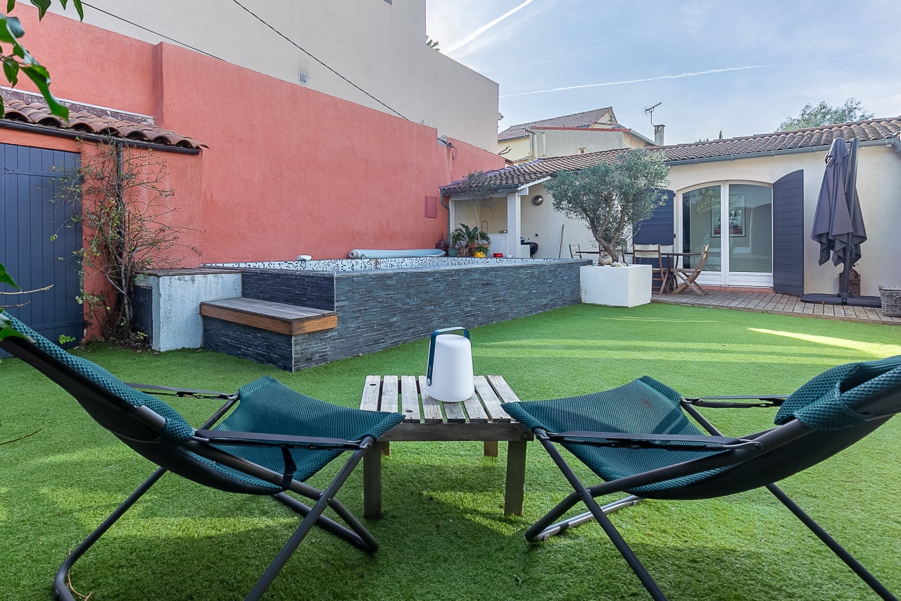 A l'abri des regards , nichée au cœur du quartier résidentiel et paisible de Montredon, entre collines et mer, cette maison de charme développe ses 196 m² sur une parcelle de 368m2.